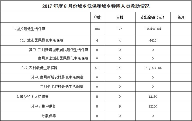 2017年8月城乡低保和城乡特困人员救助情况